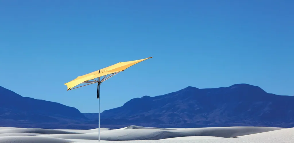 Der Razor aus der Ocean Master-Kollektion von Tuuci macht seinem Namen alle Ehre. Scharf und präzise streckt er sich gen Sommerhimmel. Sein beispielloses Design sorgt sofort für Aufmerksamkeit. Mit dem Kauf dieses Schirms erwerben Sie nicht nur einen Schattenspender, sondern auch einen echten Hingucker für Ihre Terrasse oder Ihren Balkon. Nun ist es aber nicht so, dass die klugen Köpfe von Tuuci diesem Schirm nur auf ein spektakuläres und innovatives Design hin ausgelegt haben. Nein, wie bei Tuuci gewohnt überzeugt der Schirm auch auf funktionaler Ebene voll und ganz, denn er bringt einen ganz praktischen Vorteil mit sich. Das Dach des Schirmes lässt sich ganz bequem um 360 Grad rotieren. Es kann so mit der Sonne wandern und Sie genießen den ganzen Tag lang Schatten pur. Egal wie lang Sie also im Schatten entspannen möchten, wie lang Ihr Lieblingsbuch ist: Der Razor lässt sich nicht im (Schatten-)Stich. Hinweis: das Schirmdach ist immer schräg geneigt und lässt sich nicht gerade stellen, denn nur so ist eine große Schattenfläche zu erzielen. Ein ganz besonders exklusiver Sonnenschirm in extravagantem Design. Natürlich wurden auch bei diesem Schirm, so kennen Sie es von Tuuci, nur hochwertige Materialien verarbeitet. Diese erschaffen einen Schirm mit extravaganter Optik und einer ansprechenden Dynamik. Auch wenn er durch seine Form vorzupreschen scheint, unter diesem Schirm können Sie erleben, wie wunderbar entspannend Stillstand sein kann. Wählen Sie bezüglich der Bespannung aus den verschiedensten Farben aus und geben Sie dem Schirm so eine ganz persönliche Note. Wenn Ihnen der Sinn nach etwas Außergewöhnlichem steht, dann entscheiden Sie sich hier bei der Villa Schmidt für den Razor von Tuuci. Dieser Schirm geht nicht in der Masse unter, sondern sticht durch sein „scharfes“ Design aus ihr heraus.